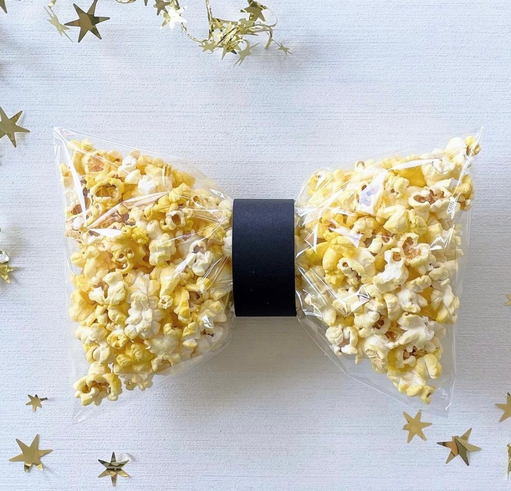 Serve plenty of appetizers, like gourmet popcorn in cute buckets, bruschetta, and tiny fruit parfaits. An Oscar party is the perfect excuse to go all out with a charcuterie board. (If you’re short on time, Trader Joe’s sells a wide variety of frozen appetizers that look as good as they taste). Stick with the Oscars color scheme and use black and gold plates, cups, napkins, and utensils.