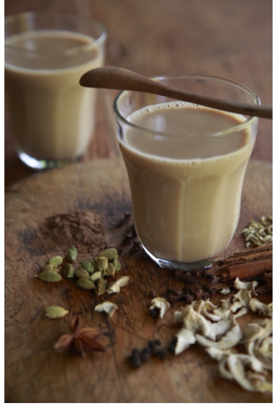 The milk in the tea helps in the easy assimilation of spices. A homeopathic dose of black tea acts as an alloy for all the ingredients, creating just the right chemical balance.