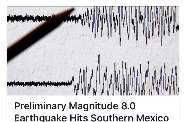 Mexico rocked by HUGE earthquake:  32 people have been killed after an 8.2-magnitude earthquake struck 60 miles off the southern coast of Mexico, sparking tsunami warnings across the world while Hurricane Irma clobbers neighbouring Caribbean islands as it heads towards Florida.