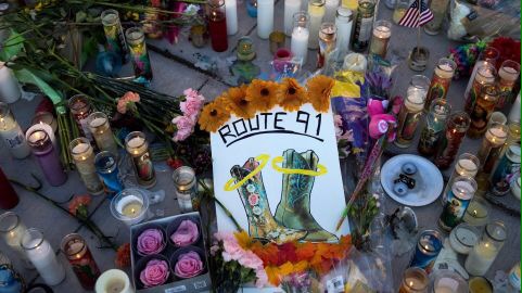 A memorial to the victims in Las Vegas, Nevada on the corner of Sahara Avenue and Las Vegas Boulevard.